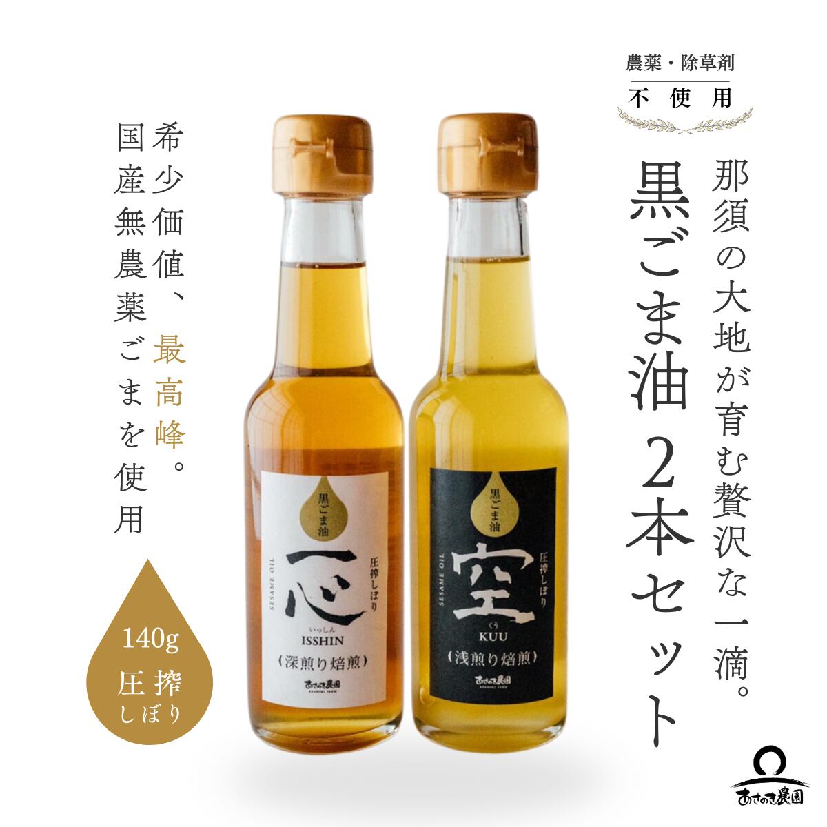 【希少品】国産黒ごま油〈焙煎2種セット〉無農薬・深煎り/贈答・ギフト向け 化粧箱入り