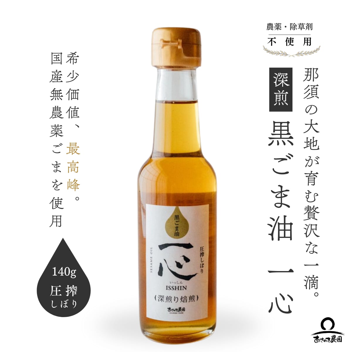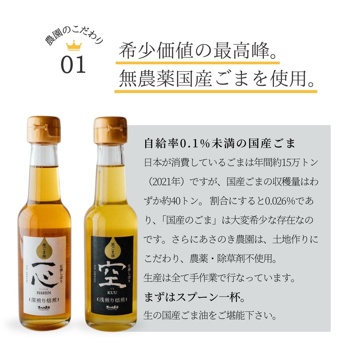 【希少品】国産黒ごま油〈一心〉深煎り・無農薬/ギフト◎ 化粧箱入り